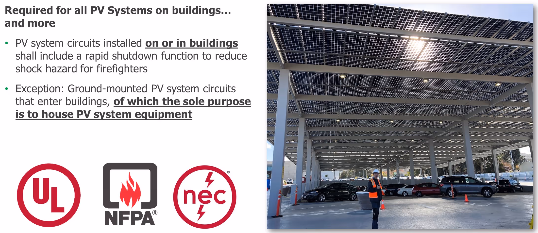但這就是NEC的要求 - 用於快速關閉的設備必須與國家認可的測試實驗室一起列出。當然,Tigo 之所以選擇UL,是因為它們最受認可,它們只是一個家喻戶曉的名字。但這就是它的意思,這就是必須發生的事情,這意味著這些系統已經過PVRSS認證。
