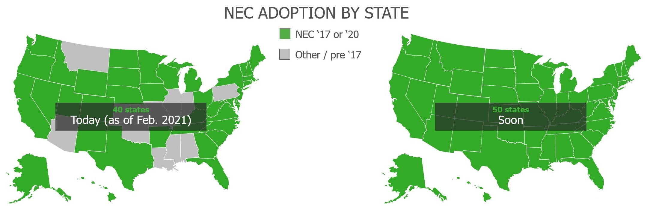 這第一次出現在2014年,代碼編寫者只是在代碼中打了一堆東西。你可以看出他們真的沒有想過,他們只是想在代碼中得到一些東西。然後多年來,他們已經改進了它。隨著他們改進代碼,越來越多的系統不斷採用越來越新版本的代碼。因此,截至今天,有40個州是NEC '17或更新的。